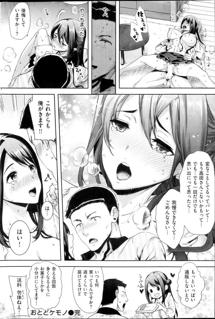 - >【エロ漫画】バイブを突っ込みノーブラで浮き上がった乳首で愛液の匂いをさせ宅配便の応対をする痴女人妻!