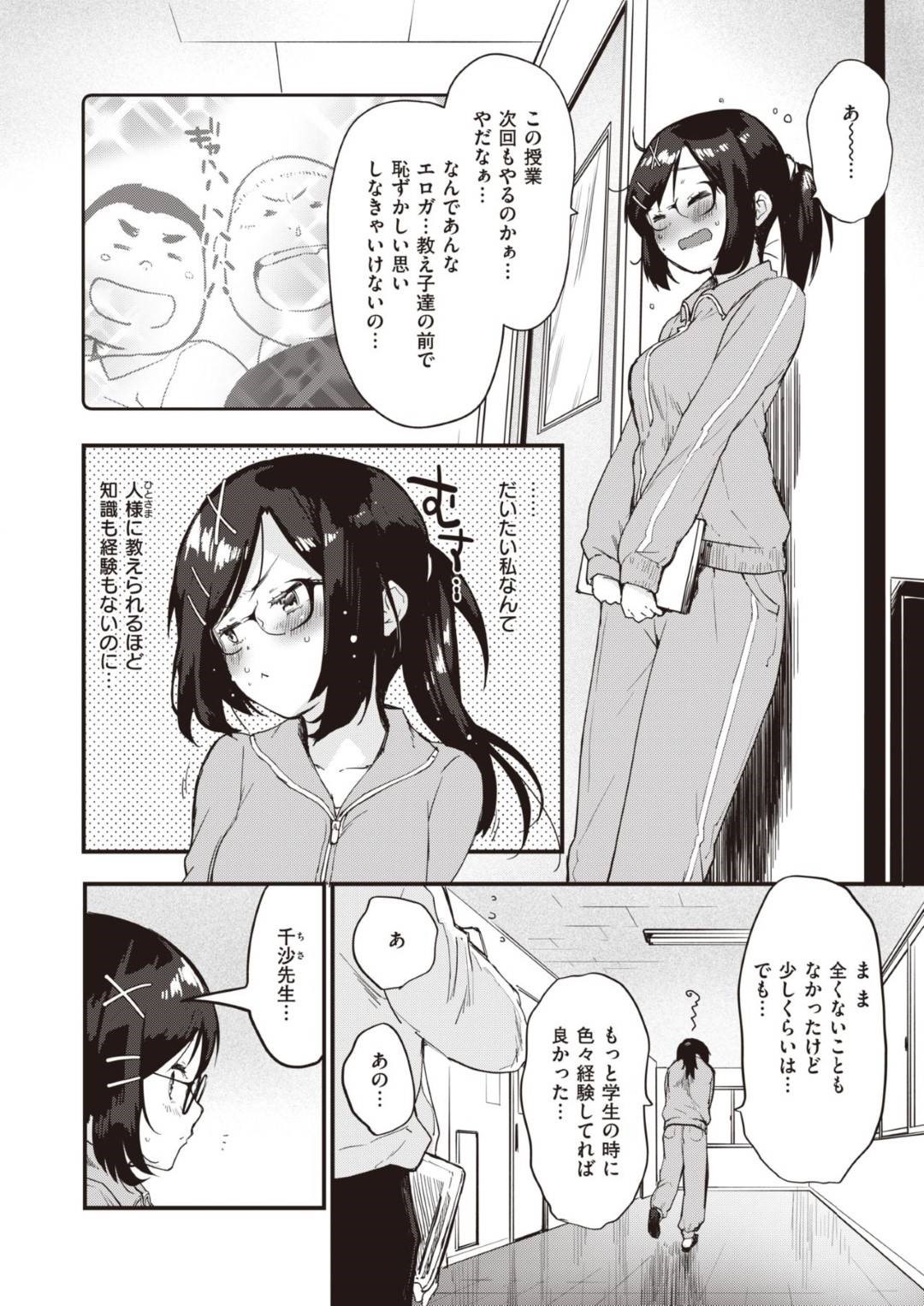 【エロ漫画】性経験が少ないにもかかわらず、性教育の授業をすることに後ろめたさすら感じる若手女教師。授業終わりに、マジメな男子生徒からチンコが大きすぎるとの相談を受ける!親身になって見てあげる教師、生殖器として機能するか確認するため、不慣れなフェラチオでごっくんまでしてしまう!気づけば男子生徒のデカちんの虜となってしまうのであったw
