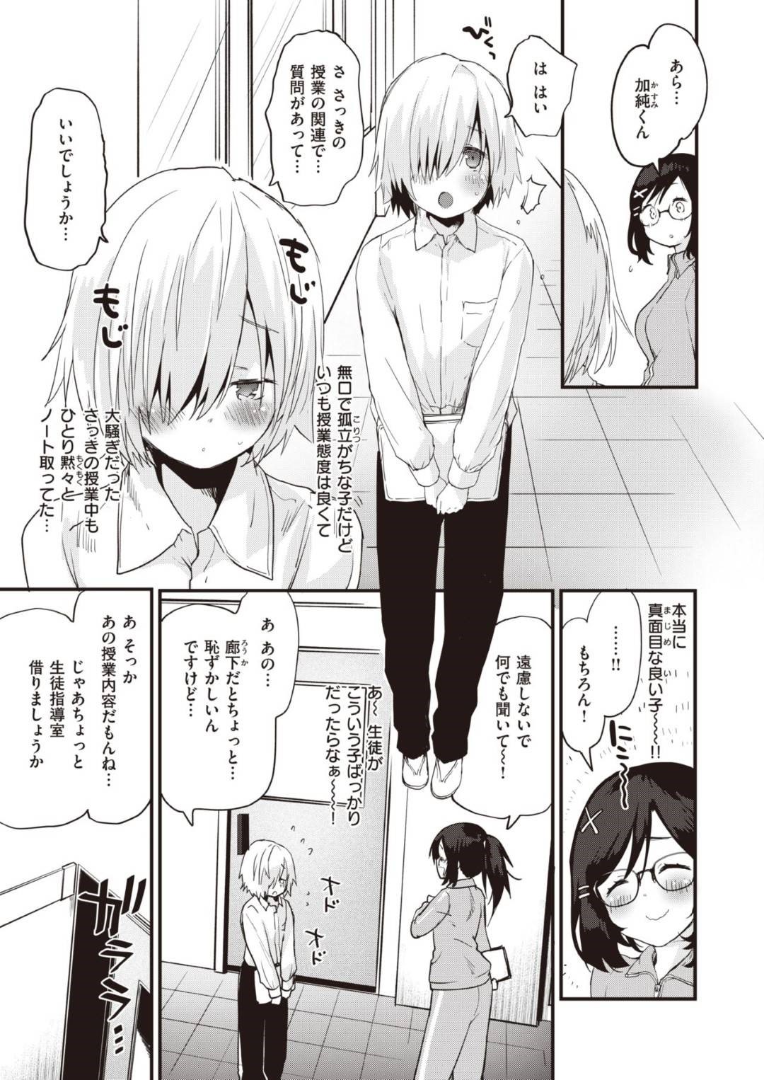 - >【エロ漫画】性経験が少ないにもかかわらず、性教育の授業をすることに後ろめたさすら感じる若手女教師。授業終わりに、マジメな男子生徒からチンコが大きすぎるとの相談を受ける!親身になって見てあげる教師、生殖器として機能するか確認するため、不慣れなフェラチオでごっくんまでしてしまう!気づけば男子生徒のデカちんの虜となってしまうのであったw