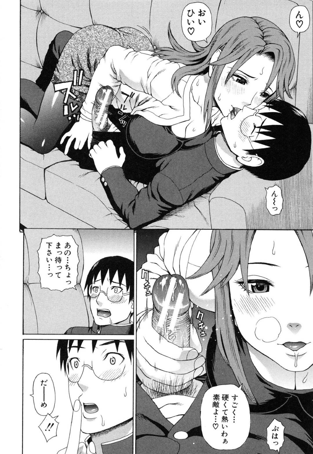 【エロ漫画】清楚系ビッチな同級生に空き教室へと呼び出された主人公。彼が巨根と噂を聞いた彼女は彼のチンポに興味津々のようで、半強引に手コキで射精させた後、騎乗位で童貞を奪う。