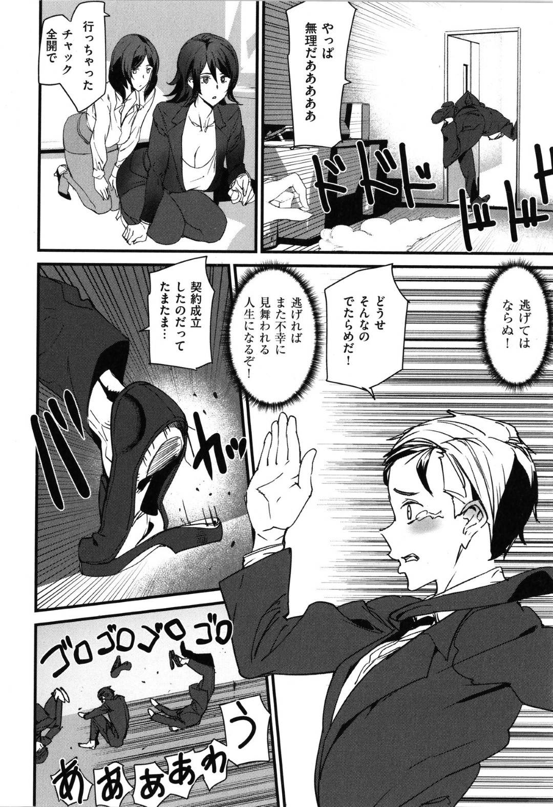 【エロ漫画】二人の先輩OLにエッチな事をさせられてしまう後輩のM男。気の弱い彼に二人は顔面騎乗位したり、足コキしたりしては強制射精させる。