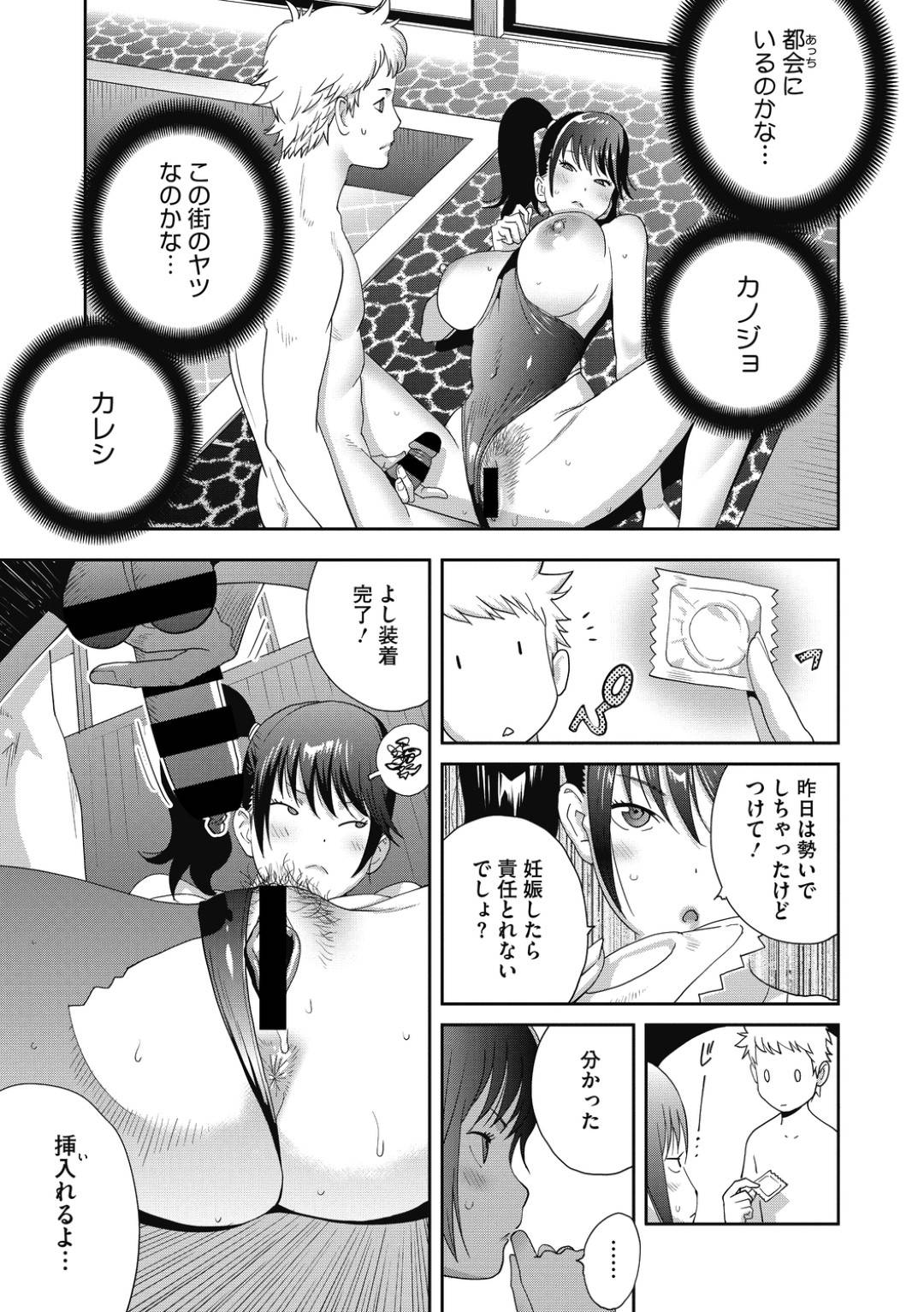 - >【エロ漫画】お世話になる女将の温泉旅館で住みこみで働く男は昔からの幼馴染女と風呂掃除からエッチな雰囲気に!どちらがスケベかを決めるイカセ対決で巨根チンコに犯されてしまう!