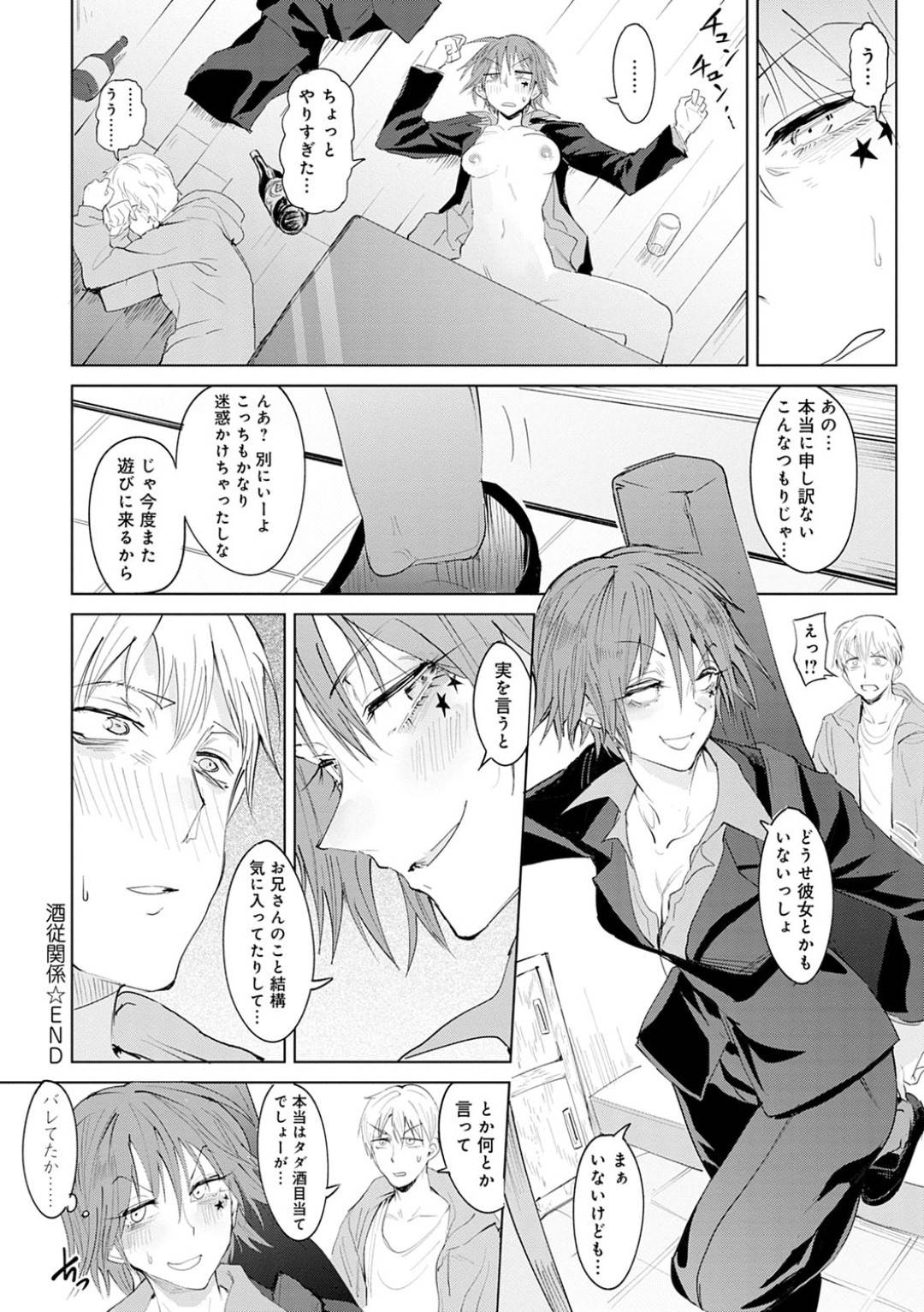 - >【エロ漫画】隣人の男を部屋に連れ込んで飲む酔っぱらいのお姉さん…酔ったせいで次第にエッチな雰囲気になった二人はディープキスし合ったり、愛撫し合ってバックや騎乗位で中出しセックスしてしまう!