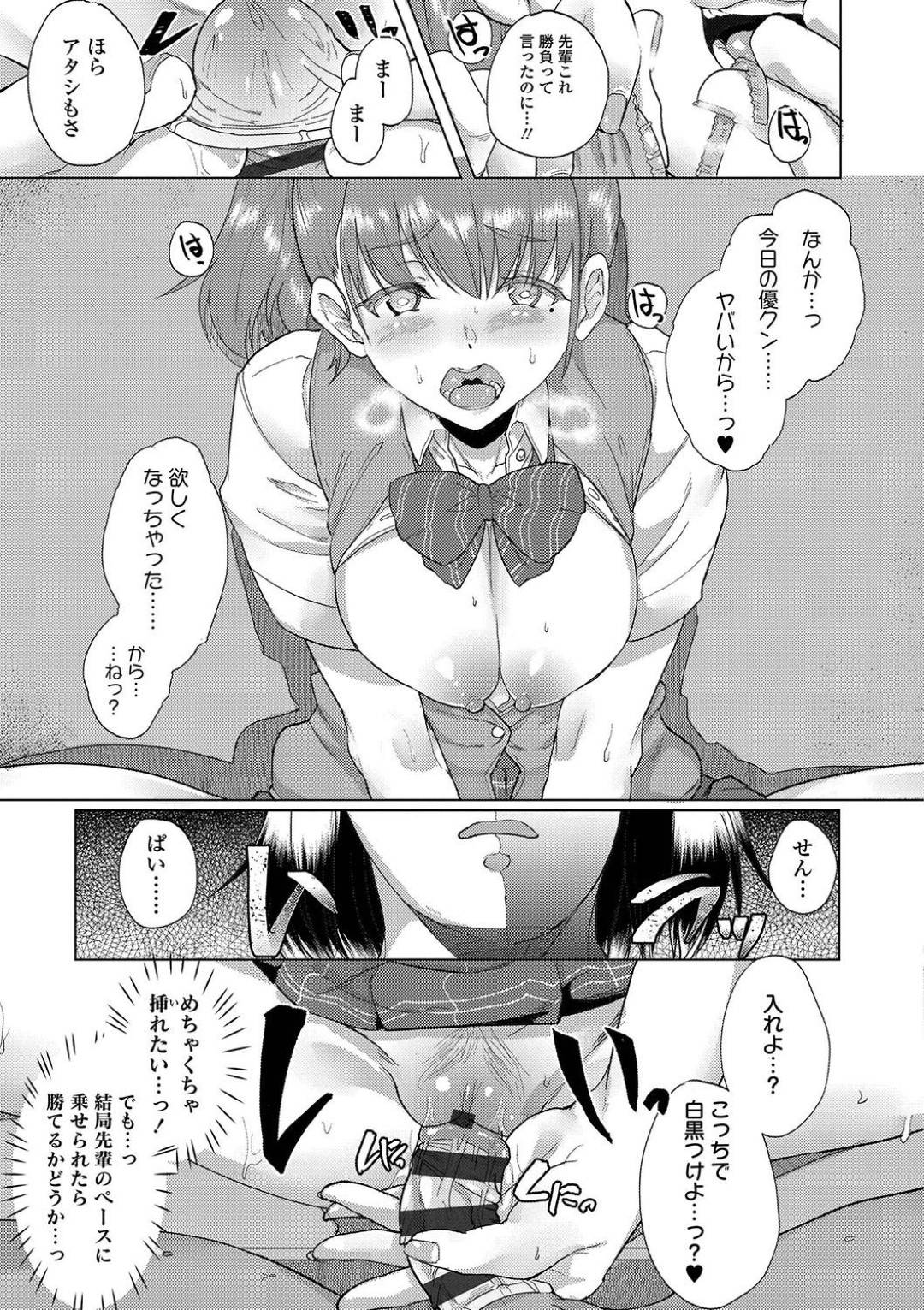 | 【2話】【エロ漫画】告白された後輩と付き合っている経験豊富で小悪魔タイプの巨乳先輩JK…イカせてくれたらバイトしている姿を見せると言い、クンニや乳首責めされるも極上テクでギリギリのところでイカす!(Now) |