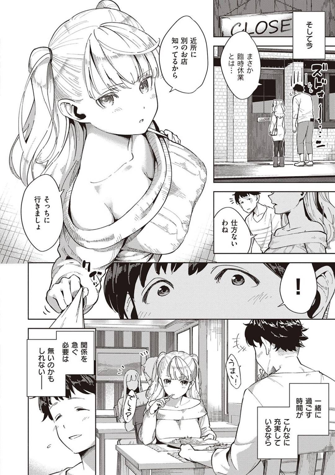 - >【エロ漫画】彼氏とラブホテルへと入った巨乳JD彼女…見た目によらず積極的な彼女は彼にディープキスしたり手コキしたりと愛撫し、正常位や駅弁などの体位でイチャラブセックス!