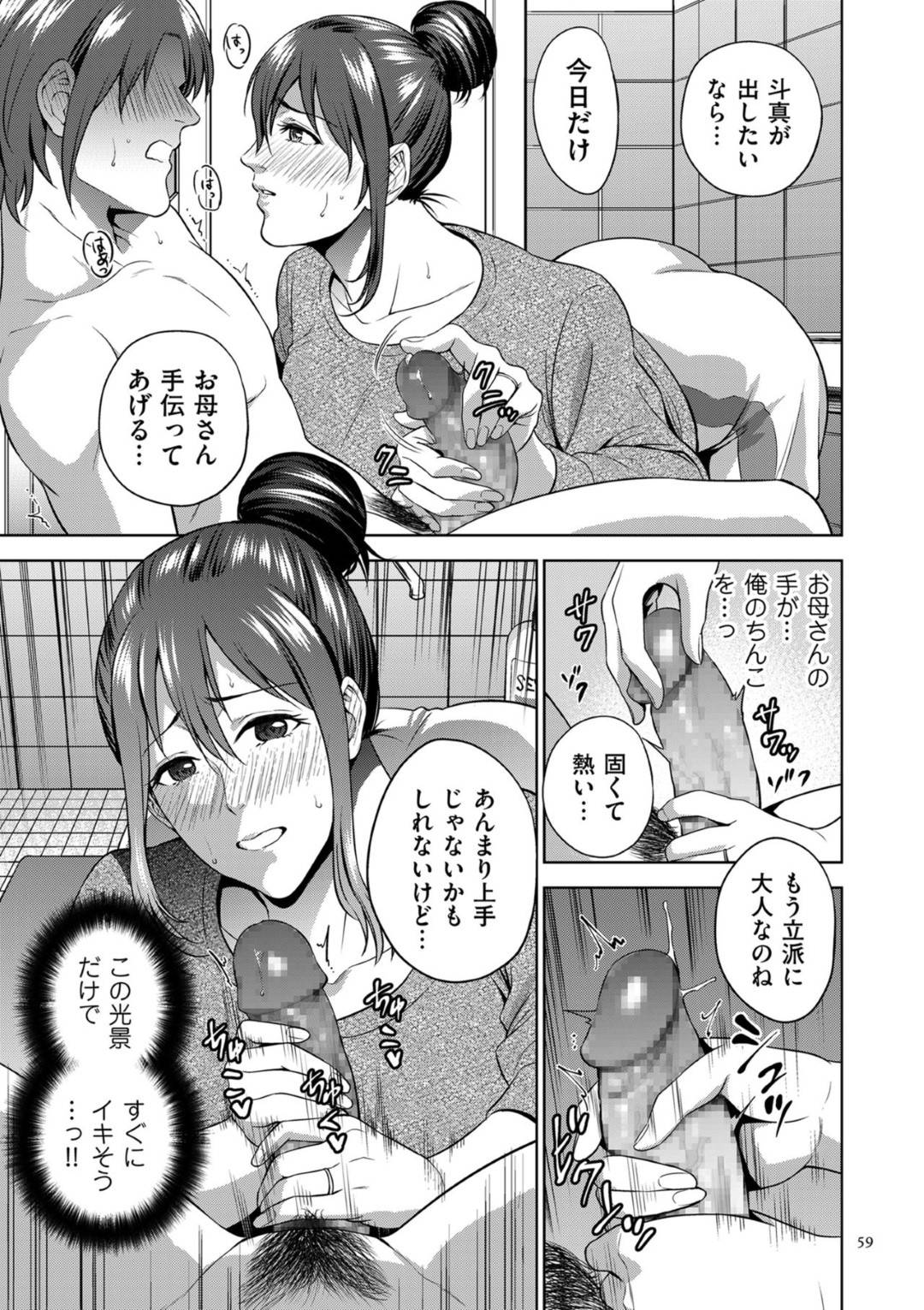 - >【エロ漫画】息子に履いてたパンツの匂いを嗅がれオナニーされる母…息子のオナニー姿を見てしまいキスされて手コキフェラしてあげると止まらずクンニされ正常位や騎乗位で近親相姦中出しセックスしてしまう!