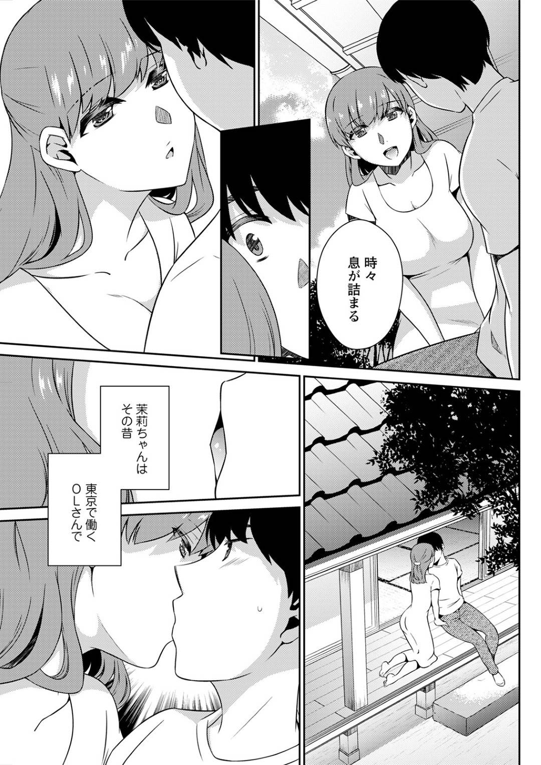 【エロ漫画】田舎へと帰省してきた主人公と不倫セックスしてしまう幼馴染人妻…積極的な彼女は自ら彼の上に跨っては騎乗位で彼のことを求める!