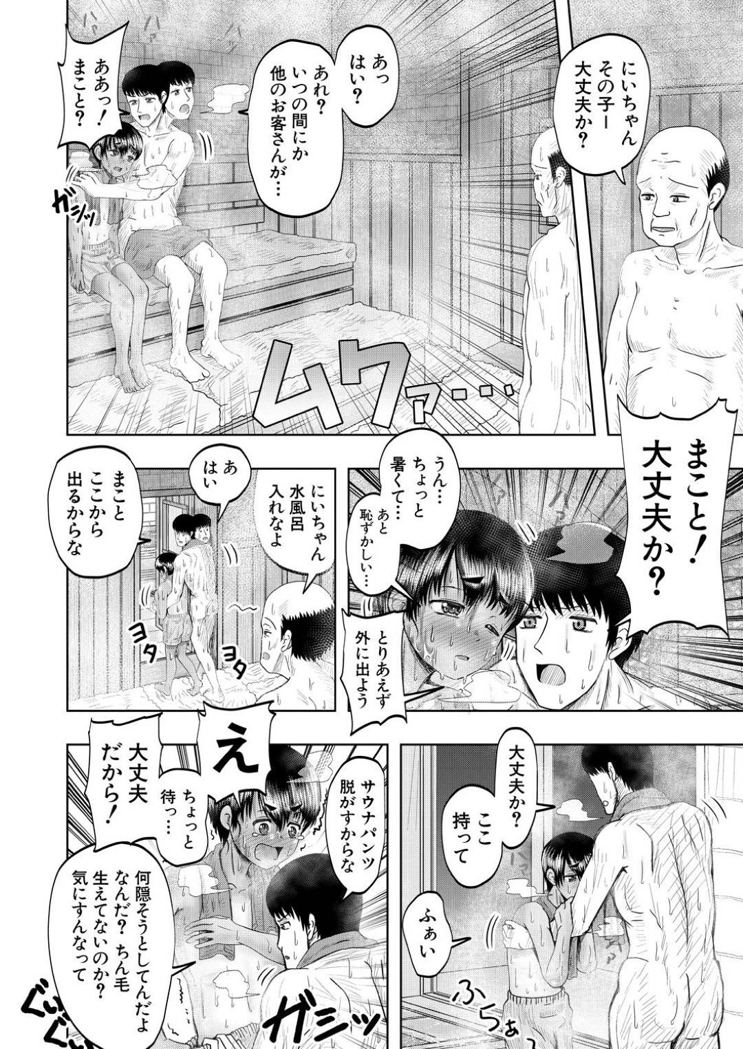 - >【エロ漫画】近所の青年に男の子だと勘違いされてサウナへと連れられた貧乳ボーイッシュ娘…2人きりのサウナで彼に女の子だとバレてしまった彼女はそのまま彼と汗だくセックスしてしまう!