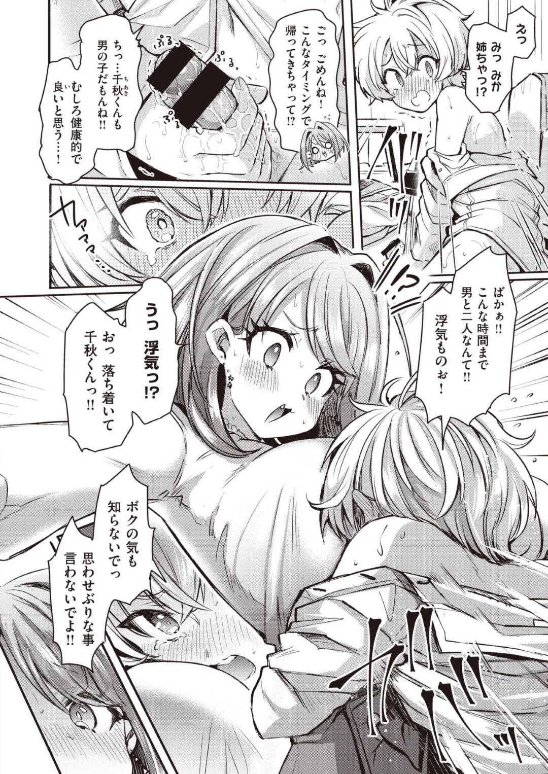 - >【エロ漫画】両親が海外出張中の甥っ子を預かっているドジっ子巨乳JD…甥っ子のオナニーを目撃したJDは気持ちを受け止め手コキ射精させいちゃラブ中出しセックスしまくる!