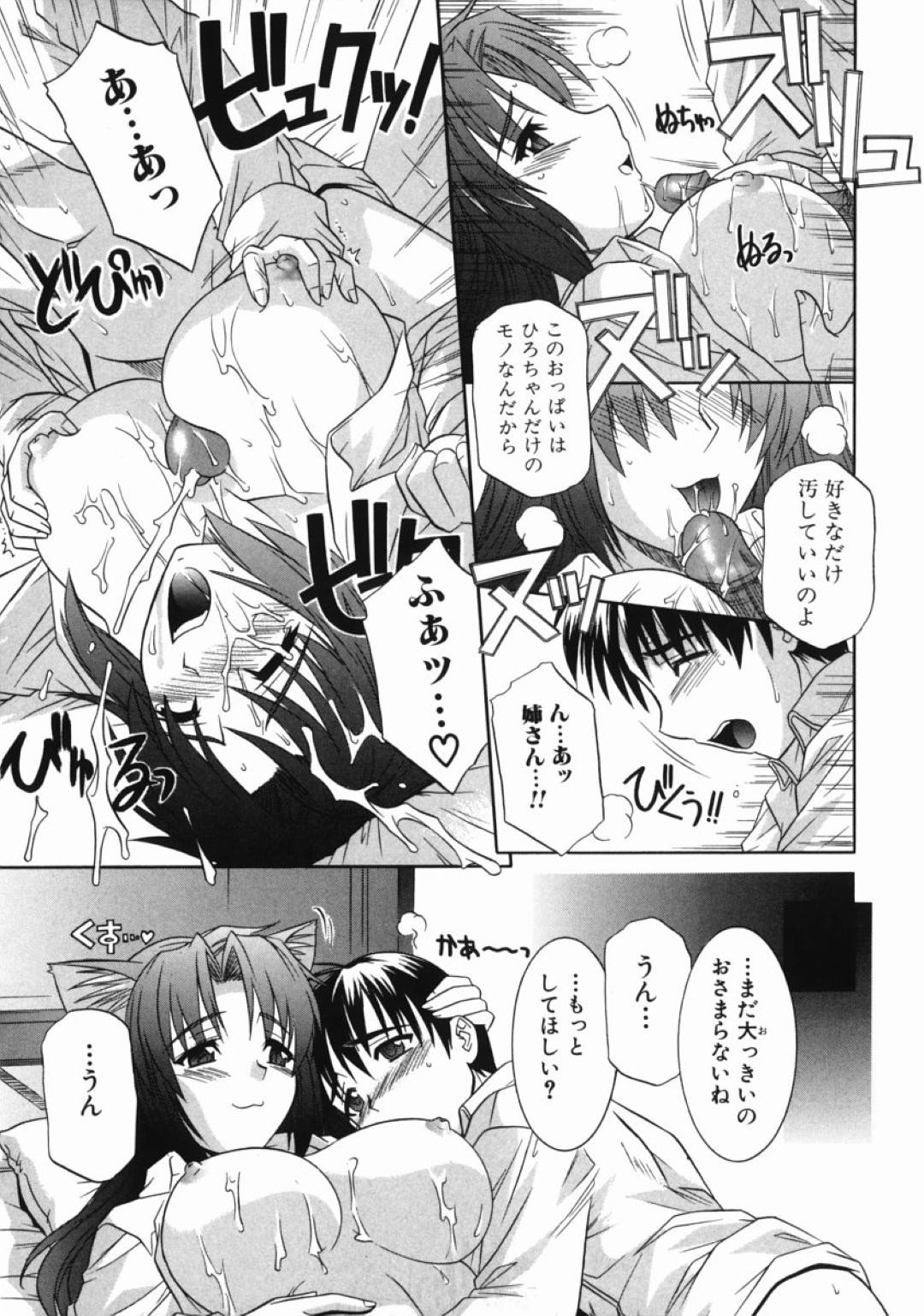 【エロ漫画】弟に朝からセックスを迫るムチムチ姉…欲情した彼女は戸惑う彼にお構い無しでフェラやパイズリをし、更にはそのまま中出し近親相姦する!