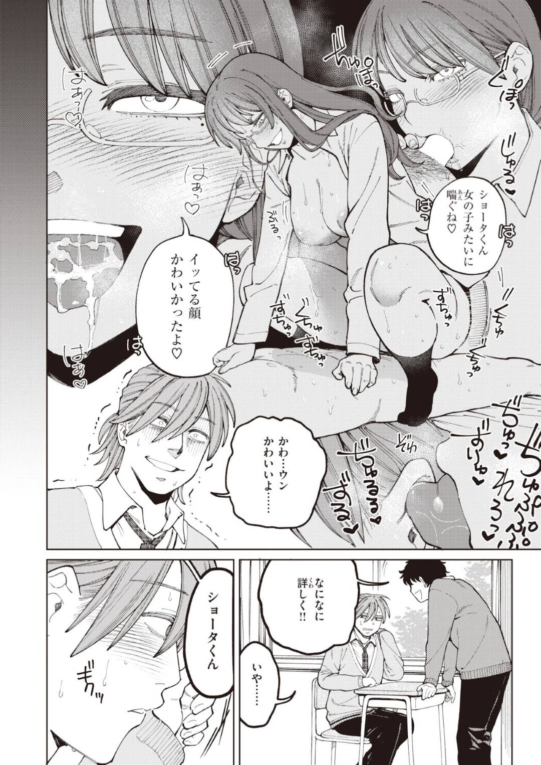 - >【エロ漫画】いつも彼氏をイジメていかせまくっているメガネっ子JK…学校で彼氏に反撃され、倉庫で強制フェラさせられ、生ハメ中出しで潮を吹く!