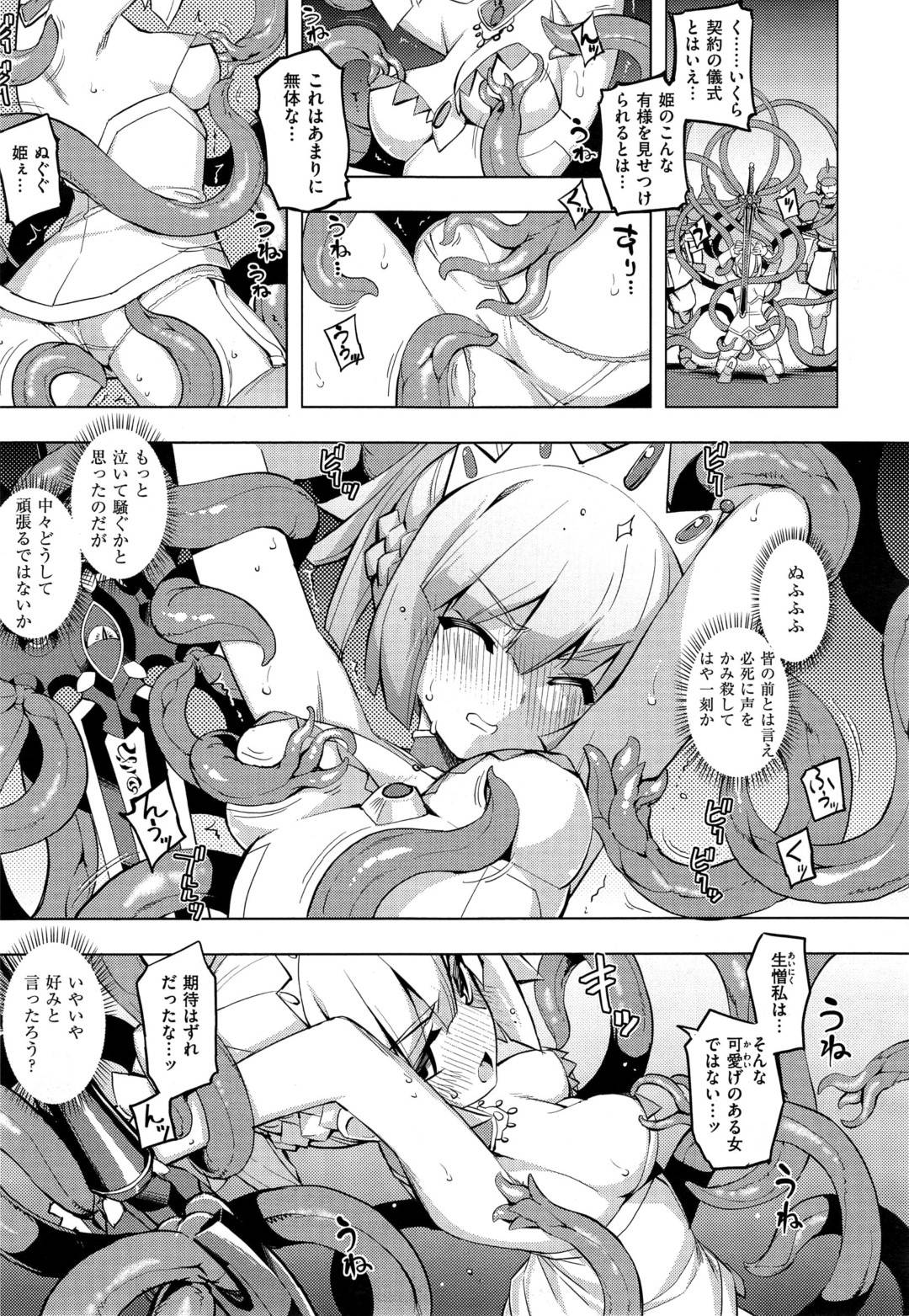 - >【エロ漫画】触手の化け物に襲われてしまった姫騎士…彼女は全身を触手で拘束されてしまい、されるがままに乳首やアナルを責められる陵辱を受ける!