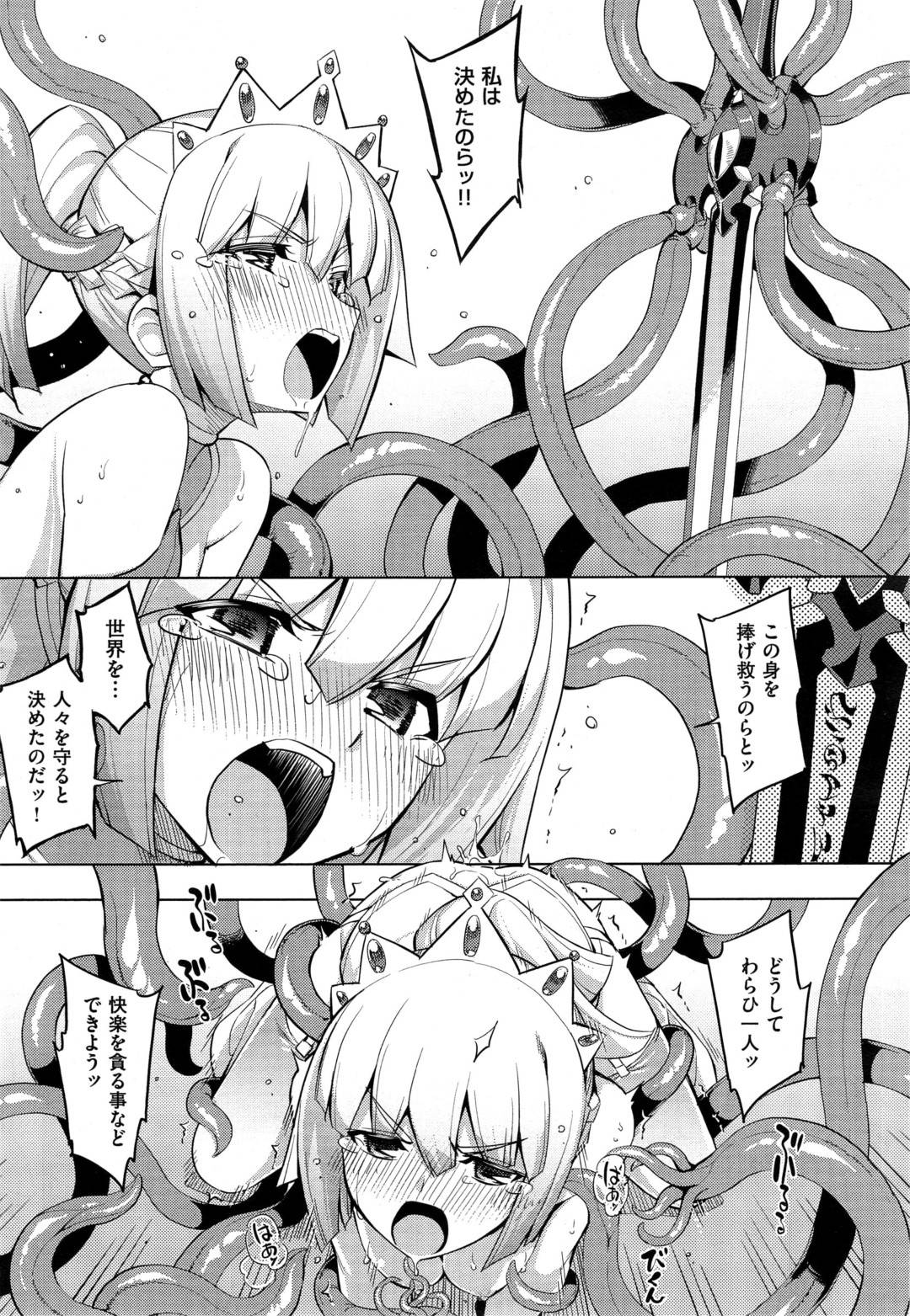 【エロ漫画】触手の化け物に襲われてしまった姫騎士…彼女は全身を触手で拘束されてしまい、されるがままに乳首やアナルを責められる陵辱を受ける!