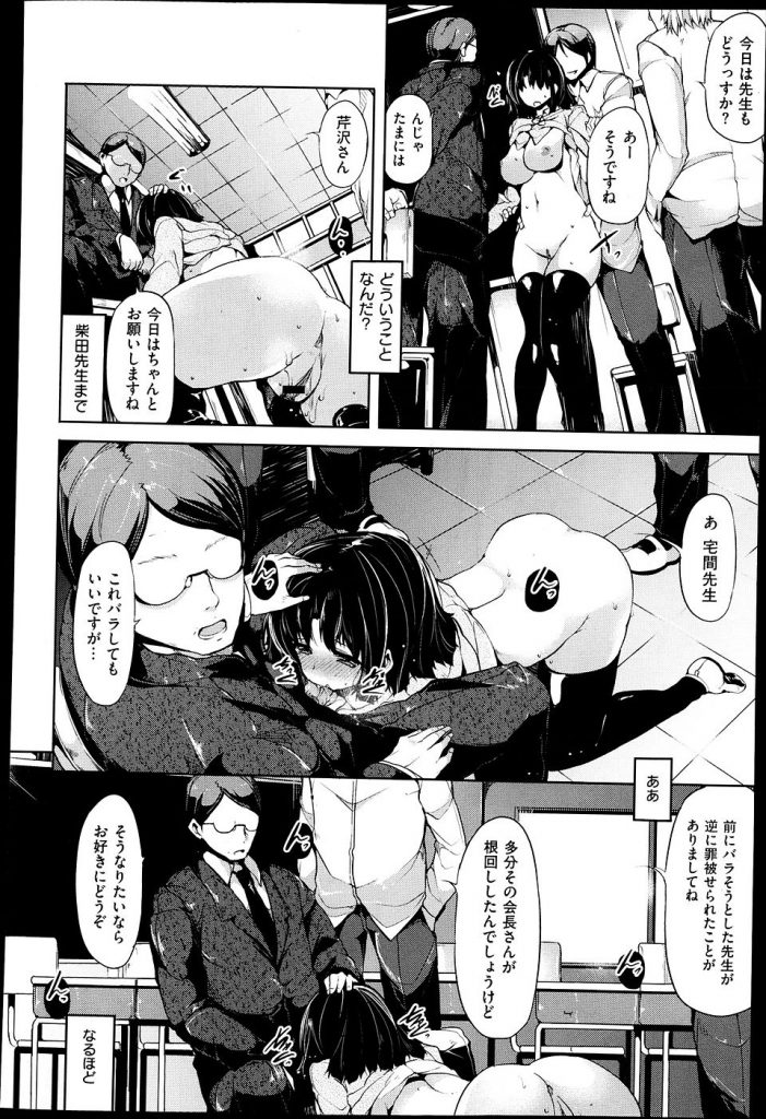 女子生徒のもとに男子生徒達が集まってきて実習生の前で服をまくり上げ巨乳出してオナニーさせる男子生徒!根暗だが身体の具合が良いので生徒たちの慰み者にされてるようで、そこに男性教諭も参加して複数プレイ!最後には実習生もしっかりハメました。