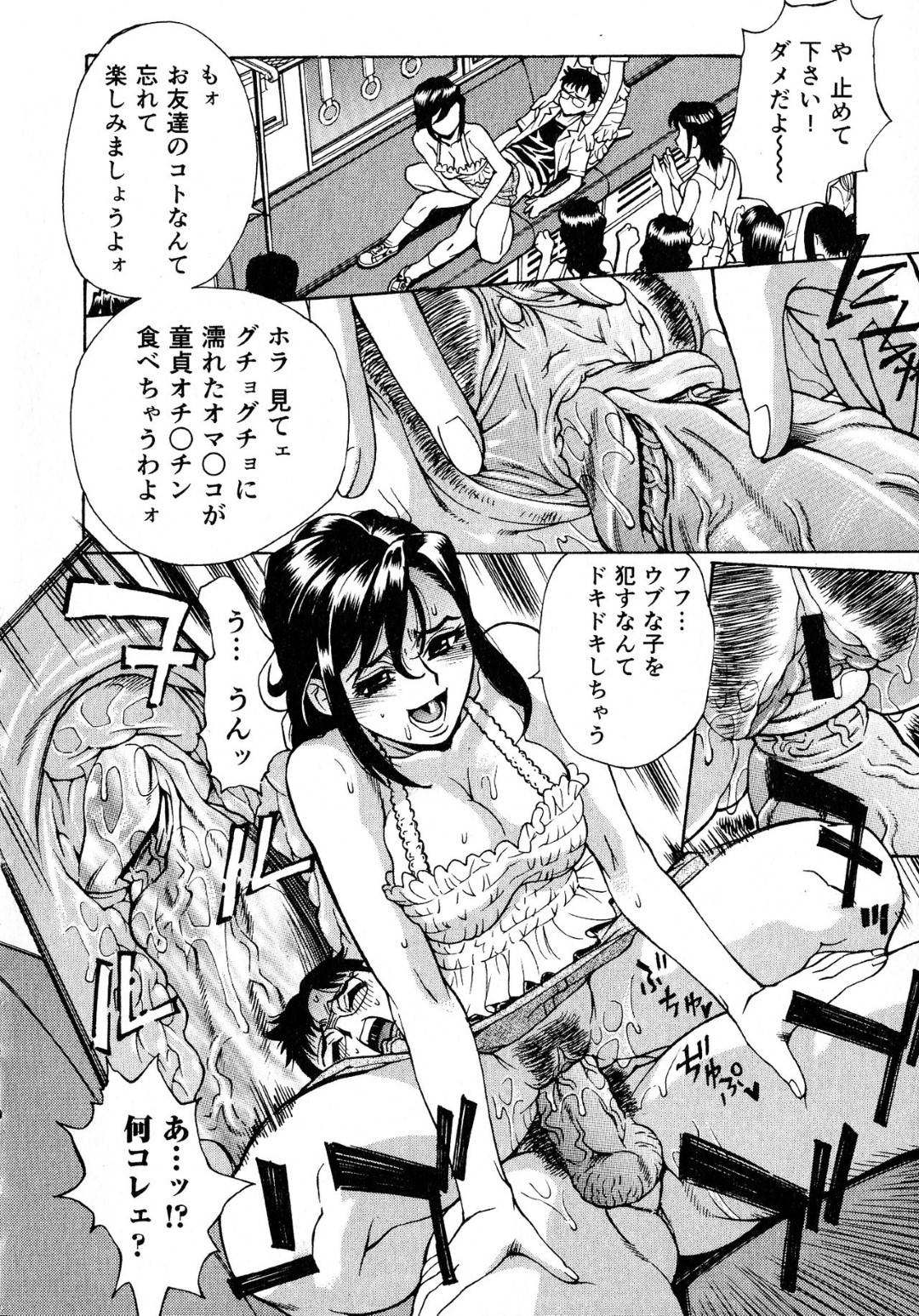 - >巨乳だらけのビッチたちが乗車する列車に乗り…逆レイプでダブルフェラや騎乗位で責められちゃう!