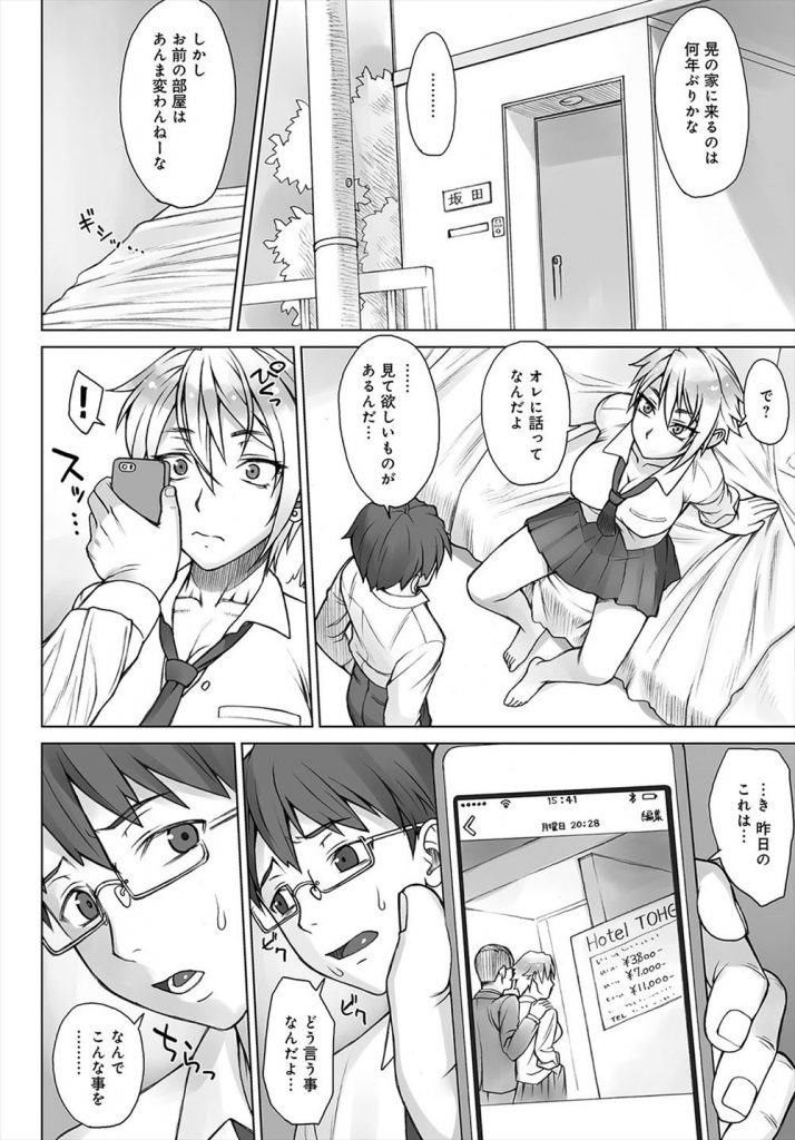 - >【エロ漫画】幼馴染のボーイッシュ娘が援交オヤジとラブホに入る所を見た童貞君が告白しながら怒りのガン突きSEX!