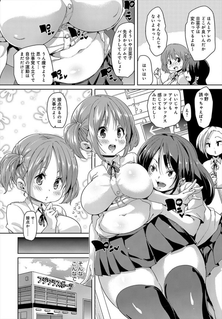 - >【エロ漫画】ひ弱男子をジムに誘い薄手のトレーニングウェアでムチムチ爆乳ボディを見せつけ筋トレSEXするJK!