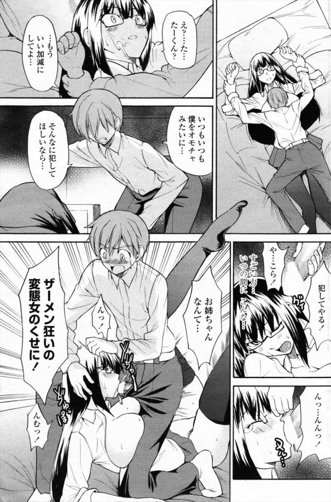 【エロ漫画】真性ドエスの姉に足コキされパイズリ射精懇願する弟が反撃レイプでデカ乳掴んでバックハメで膣内注入!