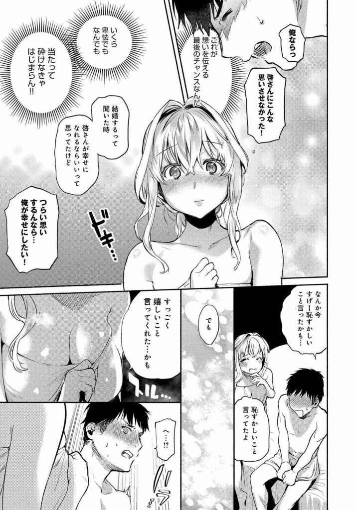 【エロ漫画】旦那の浮気で憔悴した人妻とラブホに入って好きな気持ちを伝えながら略奪セックスに成功する男!