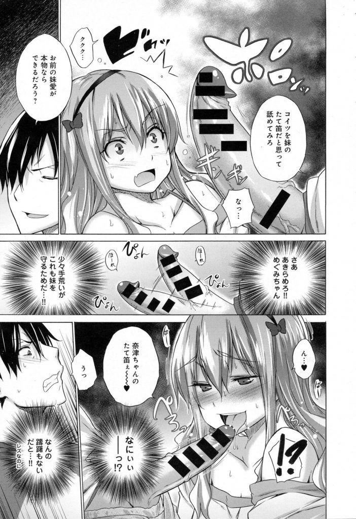 天使のような妹が大好きなシスコンの兄が遊びに来た妹の親友がタンスを漁って妹のパンツの匂いを嗅いでオナニーしてるのを発見し同性愛者の変態から妹を守ろうと長年かけて集めた妹の私物を持ち出したて笛を餌に無茶振りでチンポを出すとしゃぶりつく親友に総学生用水着を着せると妹と重ねて興奮しチンポをねじ込み中出しを決め同士となる!