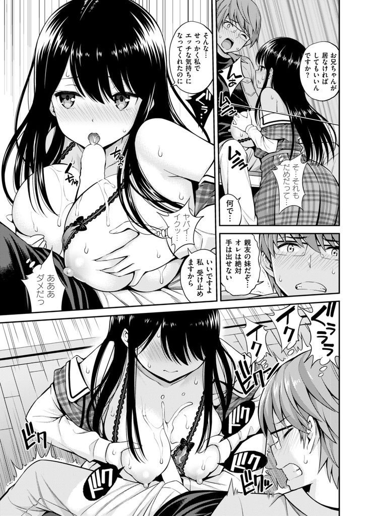 - >【エロ漫画】おとなしくてマジメで清楚な友達の妹にAVで勉強した痴女プレイを実践され想いをぶちまけながら禁断の初セックス!