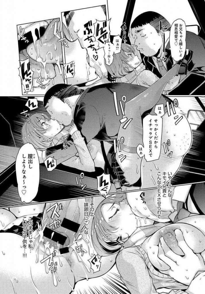 【エロ漫画】援交の待ち合わせ相手がキモイ実の兄貴だったJKの妹がオナ禁で溜めた精液を膣内に垂れ流しながら生ハメ車内レイプされる!