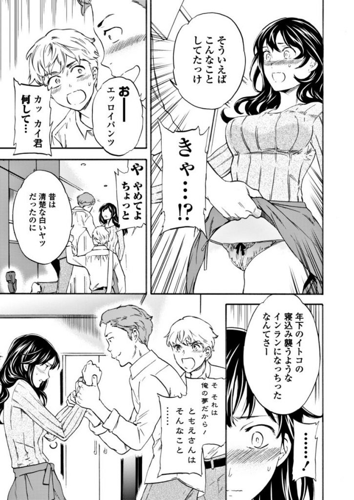 - >【エロ漫画】従姉のおねえさんに逆夜這いされた夢を見た少年が友達に話すと問い詰めながら襲って3Pで口内の感触に現実だと知る!