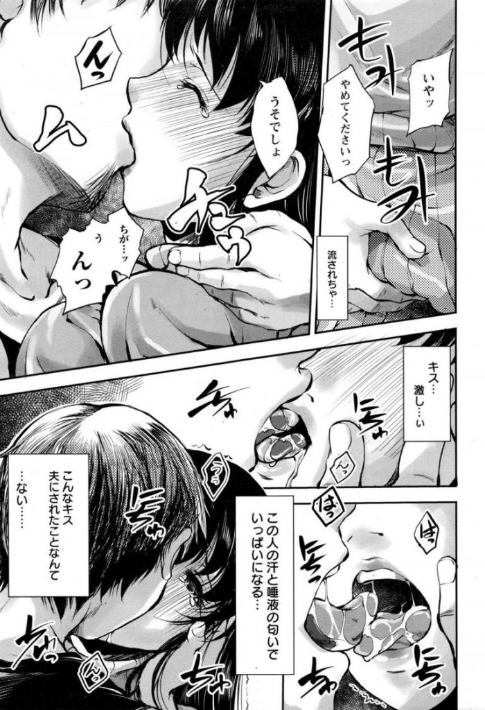 【エロ漫画】マジメな夫しか男を知らない清楚な人妻がガテン系男の逞しい身体に抱かれ力強く子宮口を擦られ他人棒アクメ!