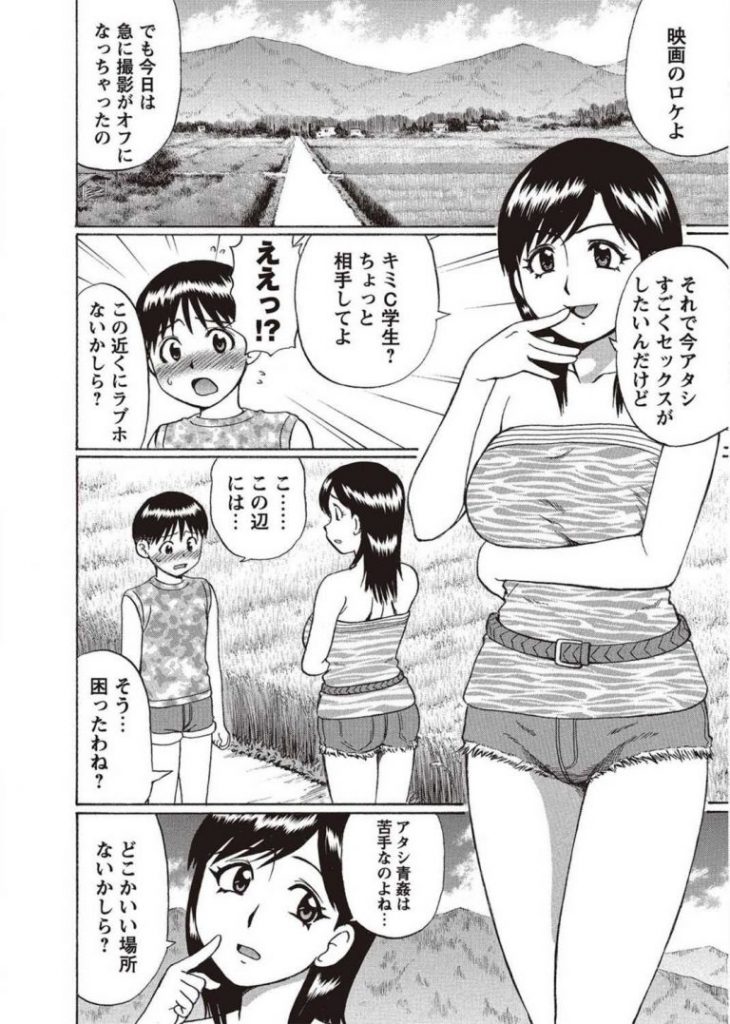 - >【エロ漫画】有名女優に逆ナンされた童貞中坊がラビアピアスを付けたグロマンを顔面騎乗で強制クンニさせられ過激な筆おろし!