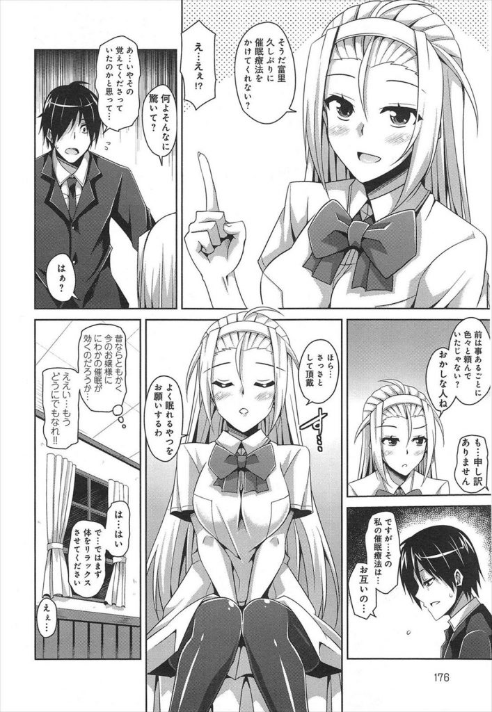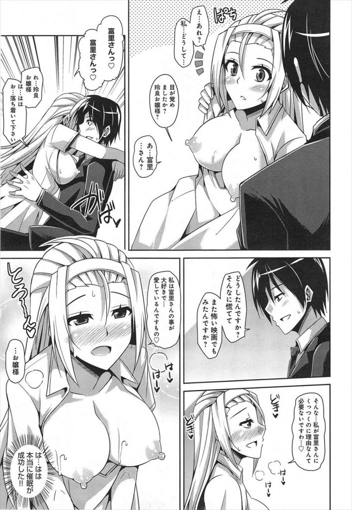 - >【エロ漫画】お見合いする高飛車な生意気お嬢様に執事が催眠療法を使い催淫状態にしておねだりさせると処女まんに種付け!