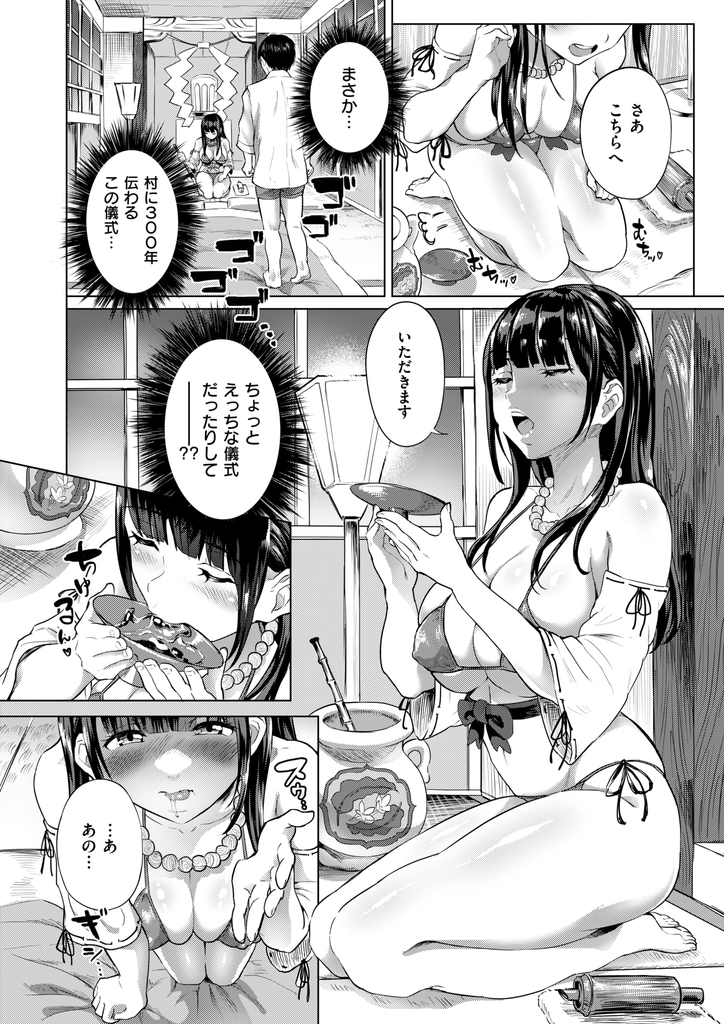 - >【エロ漫画】山奥の辺鄙な村の儀式でむっちりした綺麗な巫女に極小下着で迫られ憑き汁を全身に塗り込み肉壺に精液を納める!