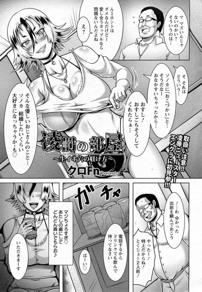 【エロ漫画】人気デリヘル嬢が痴漢の冤罪で金を巻き上げたオヤジにスタン警棒を肛門に突っ込まれ二穴を犯され電気ショック!