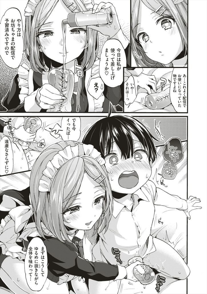 【エロ漫画】SNSの裏アカでシコシコ配信するショタお坊ちゃまを眺めながらオナるメイドが顔出しを阻止してリアル性処理!