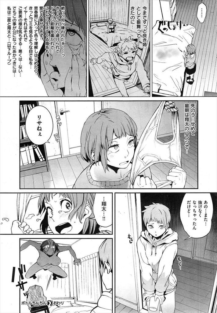 愛しいショタ弟の洗ってないパンツをかぶりながらリコーダーオナニーに没頭する変態姉が瓶にちんこを突っ込んで取れなくなった弟を手伝ってローションを使って金玉マッサして肛門責めすると欲望を抑えきれず顔面騎乗で瓶内に射精させると精液をちんこに垂らして全開手コキしてスマタで焦らし逆レイプで膣内を擦りあげ中だしお漏らしアクメ!