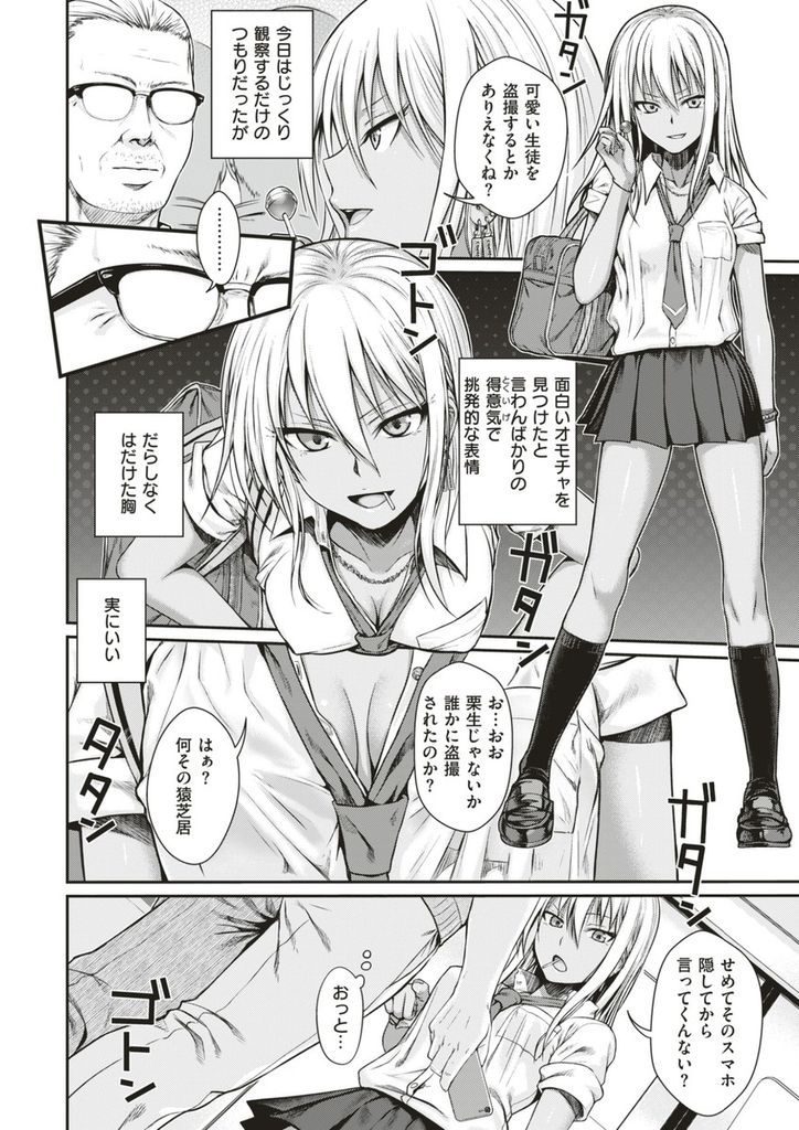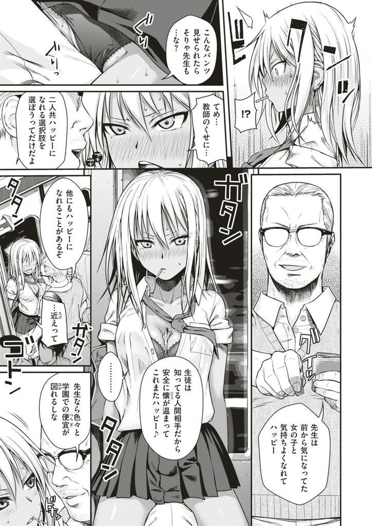 【エロ漫画】素行不良の問題児ギャルを盗撮した中年聖職者が金を握らせ公然と痴漢すると褐色の体に欲望をぶちまける!