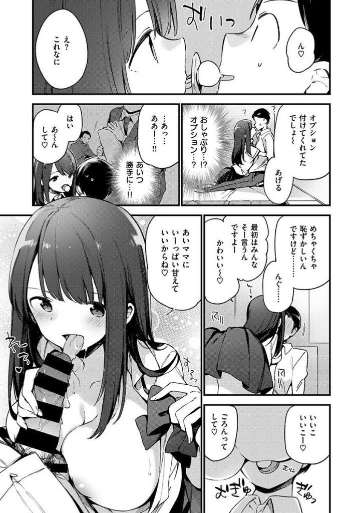 - >【エロ漫画】風俗嬢に甘えてママプレイするサラリーマンが授乳手コキで昇天すると延長で本番生ハメして膣内射精!