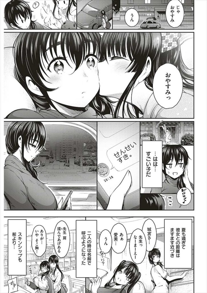 【エロ漫画】学校で男子の性のはけ口になる教え子のJKに恋心を持った女教師がレズ行為を見られグループセックスにハマる!