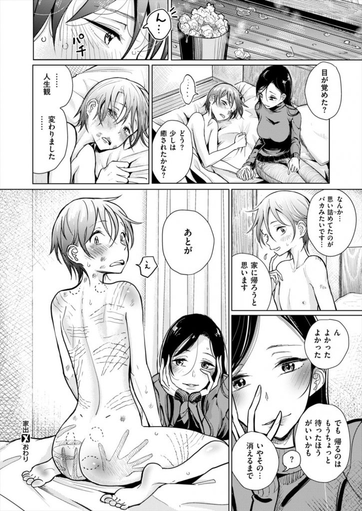 【エロ漫画】巨乳お姉さんに拾われた家出少年が前立腺を延々と撫でまわされ快感に身悶えし貪欲に精液を絞り取られる!